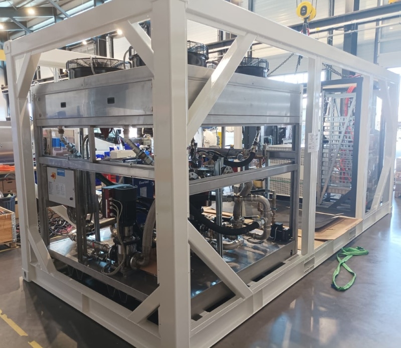 Mais pour un refroidisseur d’un tel gabarit (près de 1200 kg !), et pour coller à l’ambition de la société ORTEC, qui envisage un déploiement de station hydrogène à grande échelle à travers l’Europe, il faut forcement « monter le niveau » !
