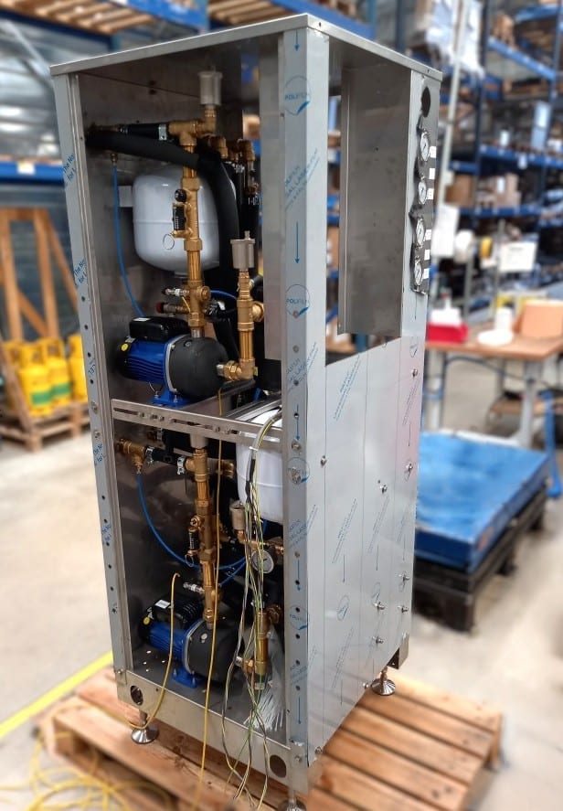 Parmi les nombreux appareils que nous livrons chez ce client depuis de nombreuses années, ici en exemple, un échangeur thermique ECH 60 qui rejoint le site de Guingamp, spécialisé dans la production de crêpes fourrées : certaines étapes du process industriel nécessitent une gestion précise et fiable des températures pour que le résultat final soit le plus gourmand possible !