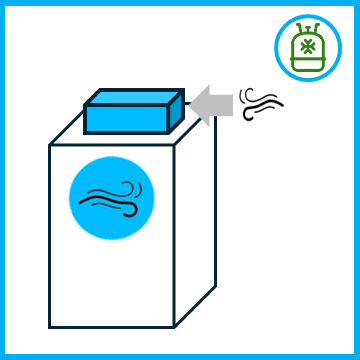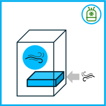 Pour produire du froid, un climatiseur actif intègre un circuit frigorifique : il s’agit d’un système fermé (comprenant principalement un compresseur, un détendeur, un évaporateur et un condenseur) dans lequel circule un fluide frigorigène qui, en changeant d’état, va transporter des calories pour les extraire de l’armoire (ou du local, ou du shelter…) à refroidir.