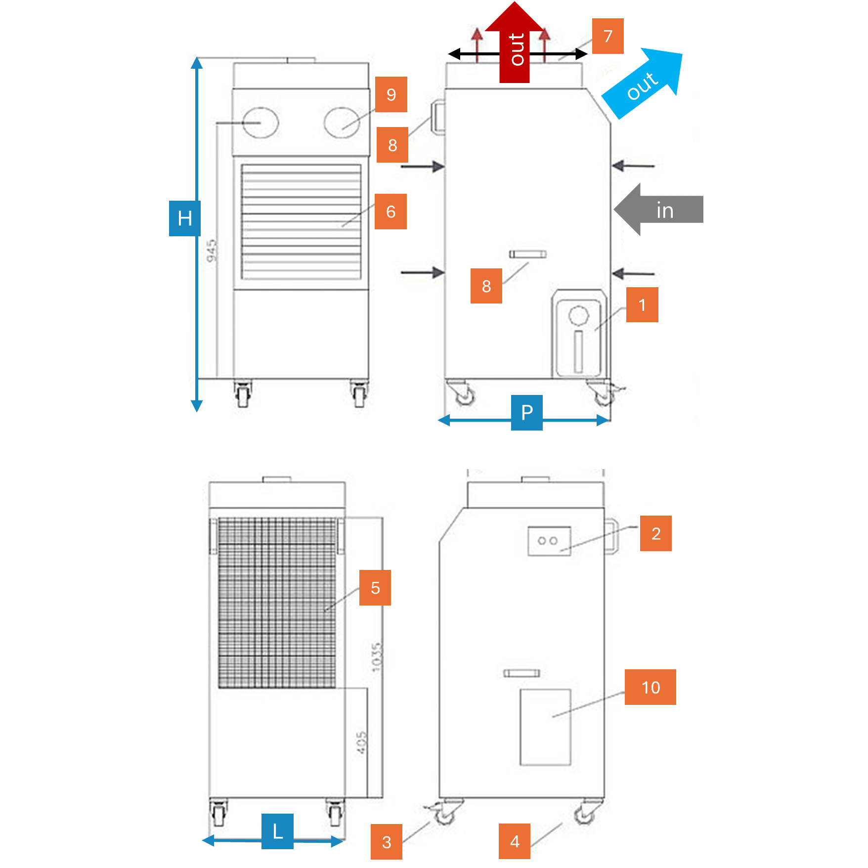 - Bac de récupération des condensats (20 litres)