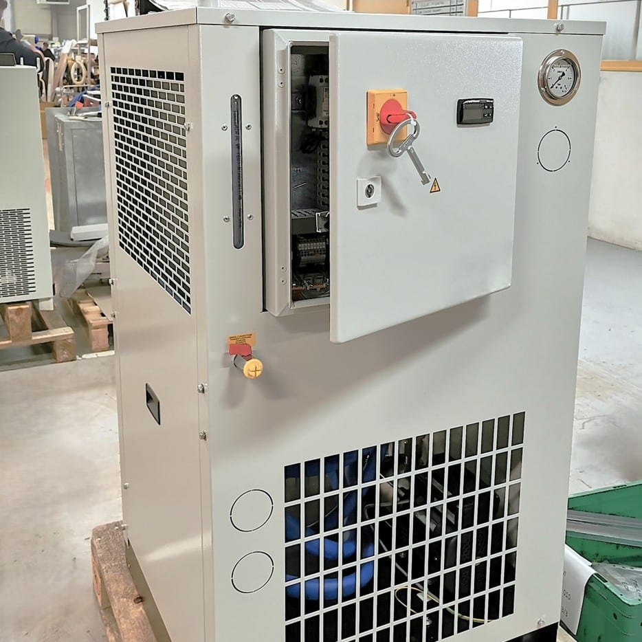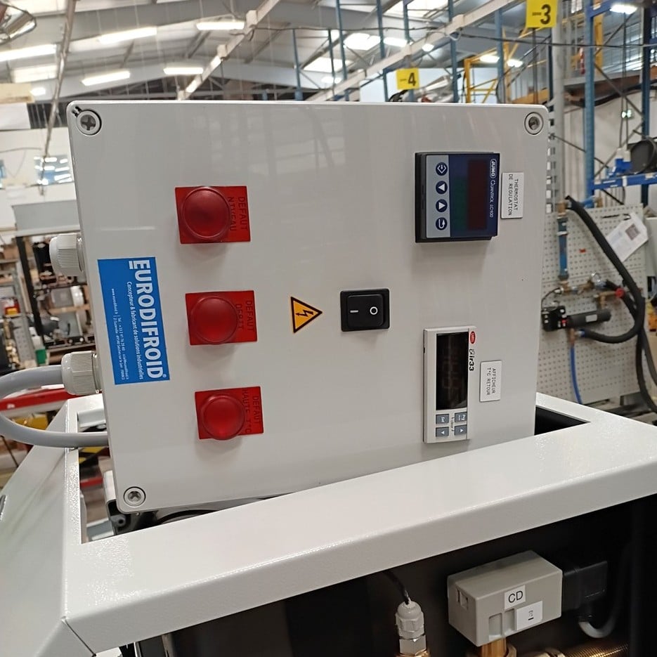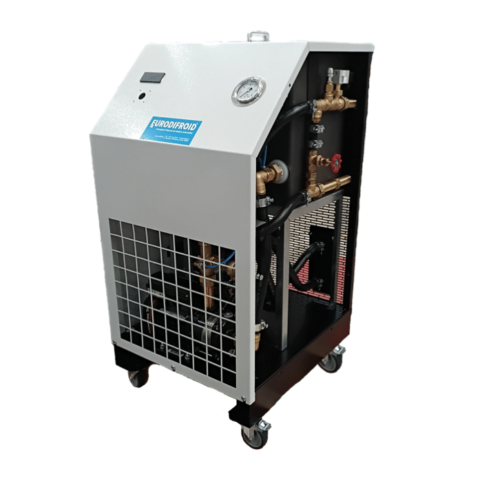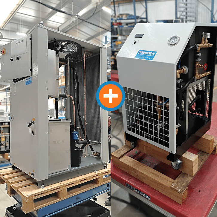 - Le système de refroidissement, tel qu’un refroidisseur actif, assure une production stable de froid (là où il n’y a pas forcément de boucle d’eau froide, ou trop peu efficace). Mais il ne suffit pas toujours à garantir une température parfaitement maîtrisée et précise au point d’utilisation ;