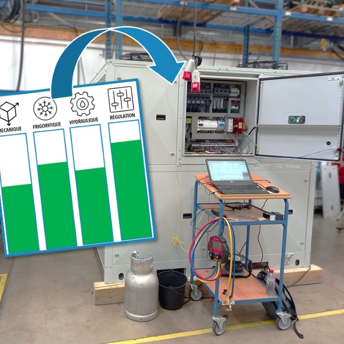 Puissance, gaz frigorigène, type de compresseur, circuit hydraulique, ventilation, régulation… nos équipes d’ingénierie ont la main complète sur tous les paramètres de l’appareil, pour le configurer exactement selon le juste besoin.